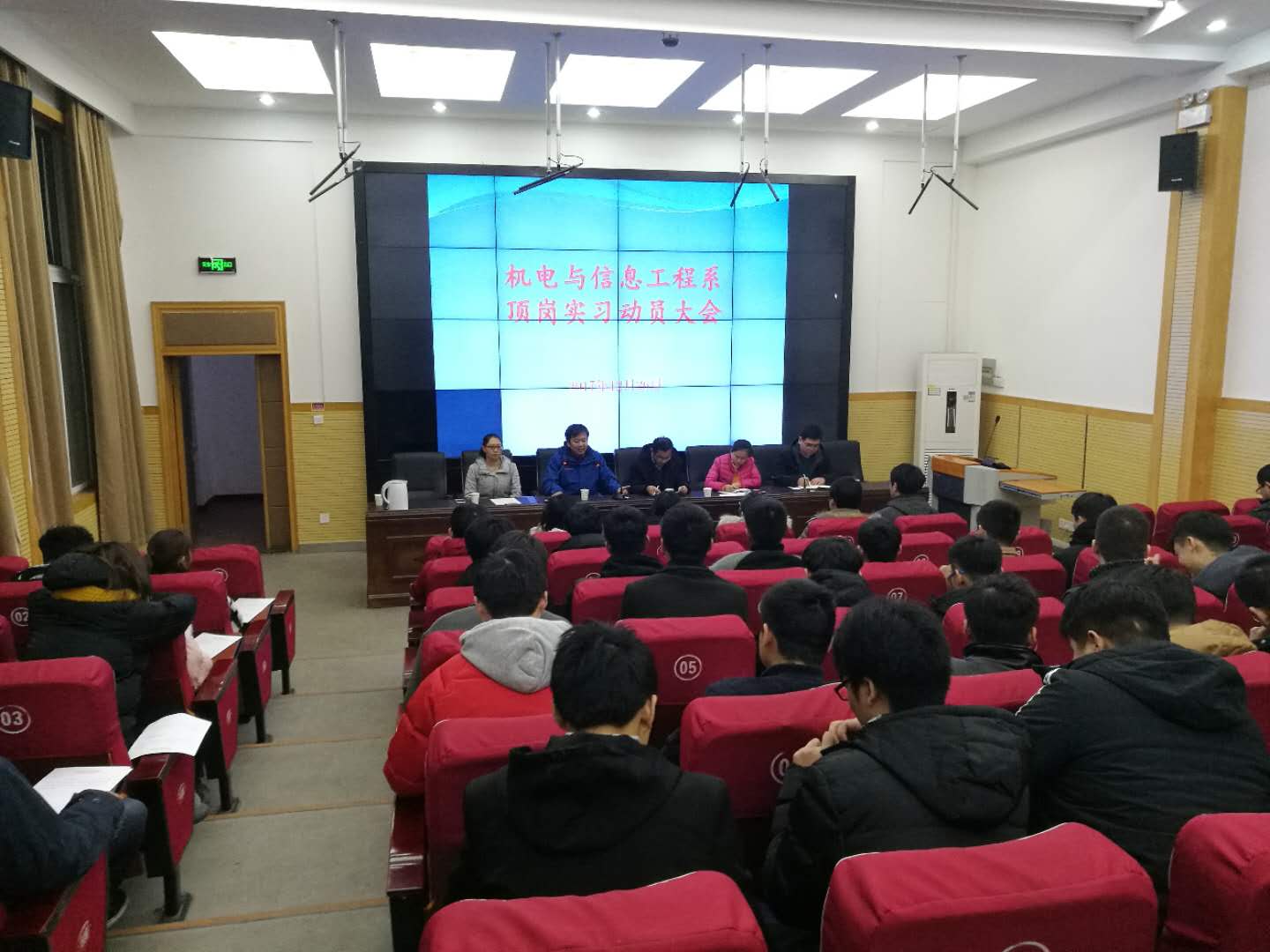 2017年12月26日,机电与谈球吧官网在北教三阶召开顶岗实习动员大会,系党支部书记、主任武凤翔,副主任王利卿,顶岗实习各班学生及其辅导员和指导老师参加。
