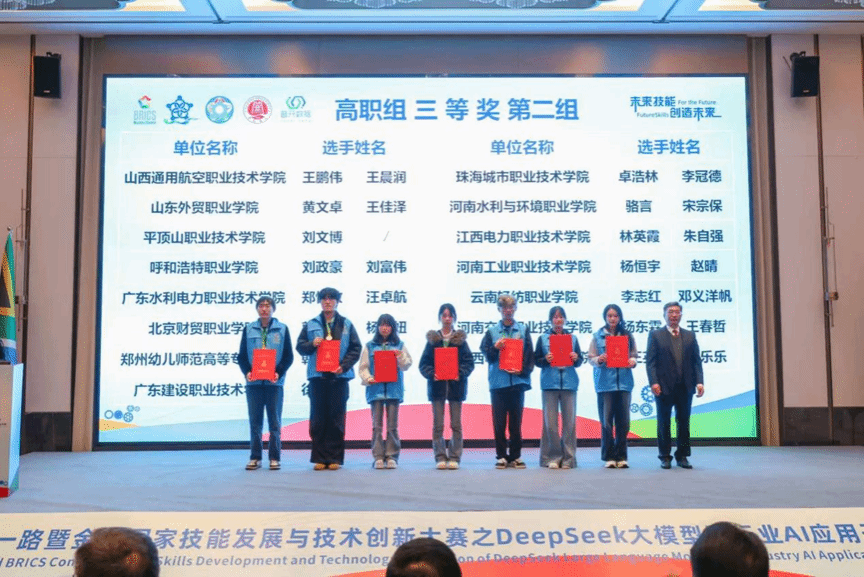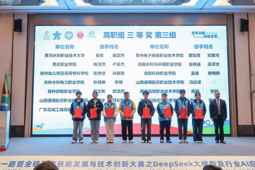 11月6日至8日,2025“一带一路”暨金砖国家技能发展与技术创新大赛之首届DeepSeek大模型及行业AI应用开发赛项全国总决赛在开封大学成功举办。大赛设置本科组和高职组,共有来自全国150多支队伍参赛。经过激烈角逐,谈球吧官网谈球吧官网2支队伍脱颖而出,荣获全国三等奖2项。
