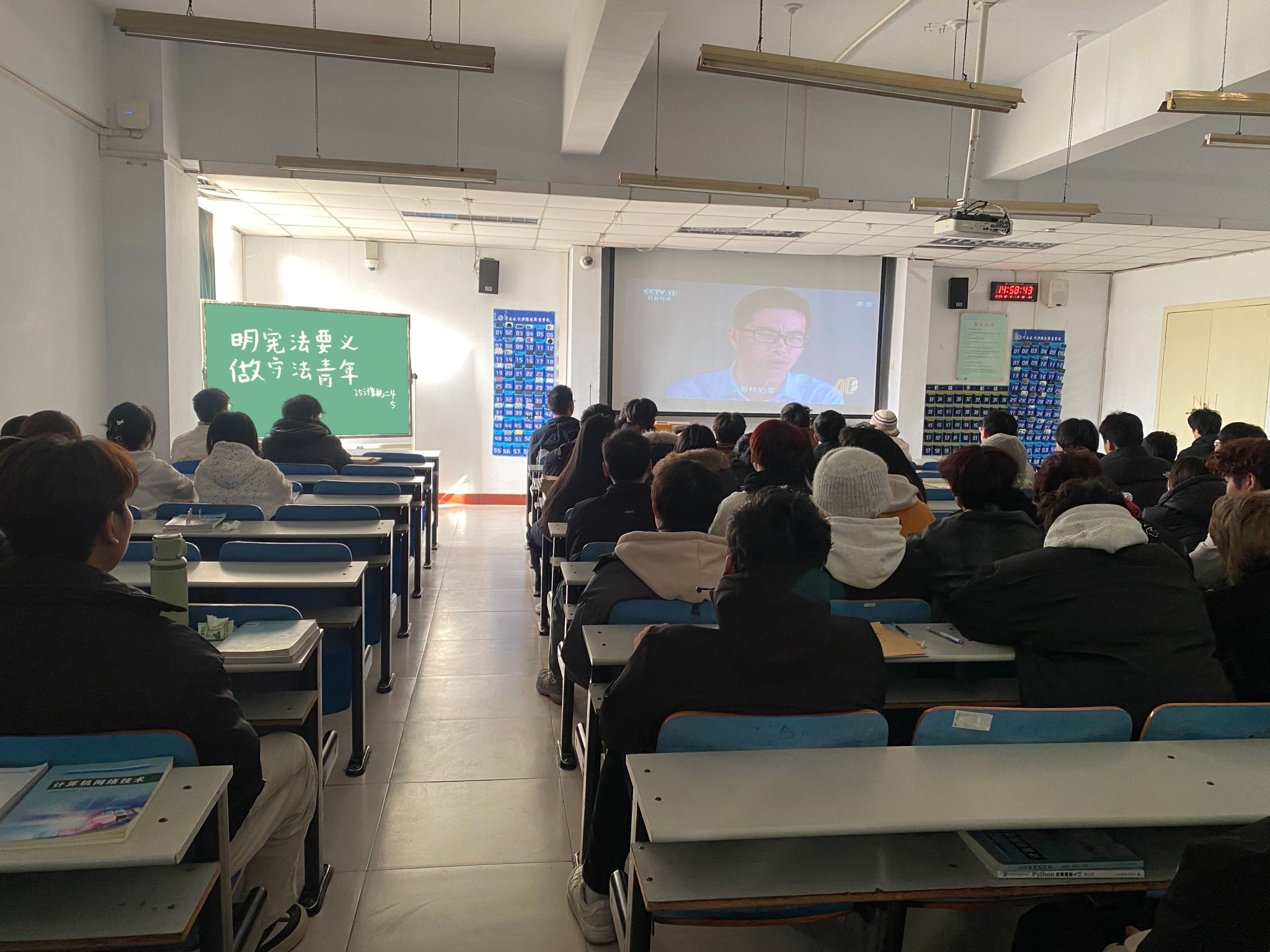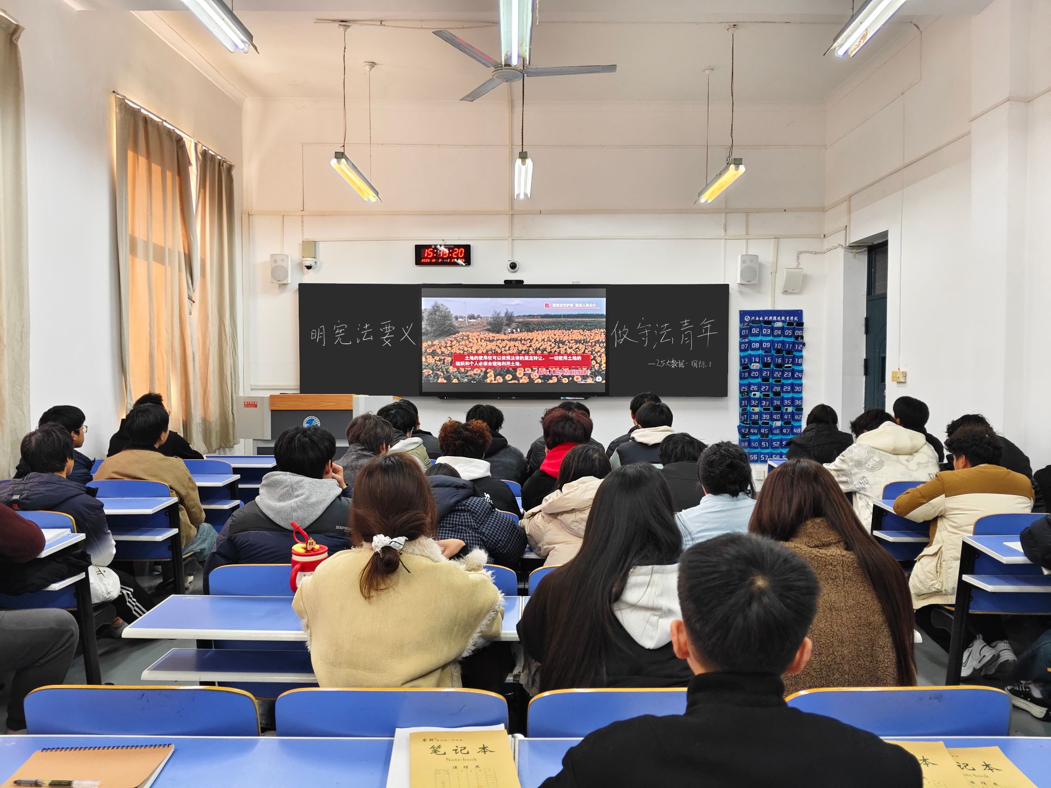 在“明宪法要义,做守法青年”学宪法主题团课上,学院组织同学们观看CCTV纪录片《建设法治强国 让法治的阳光温润每一个国人》以及宪法日宣传视频。视频以生动的画面、鲜活的案例,展现了宪法在国家治理和社会生活中的重要地位与作用,让同学们直观感受宪法魅力。观看结束后,各班团支部书记结合视频内容,深入阐释习近平法治思想,剖析宪法核心内涵,引导同学们深刻领会宪法精神实质。