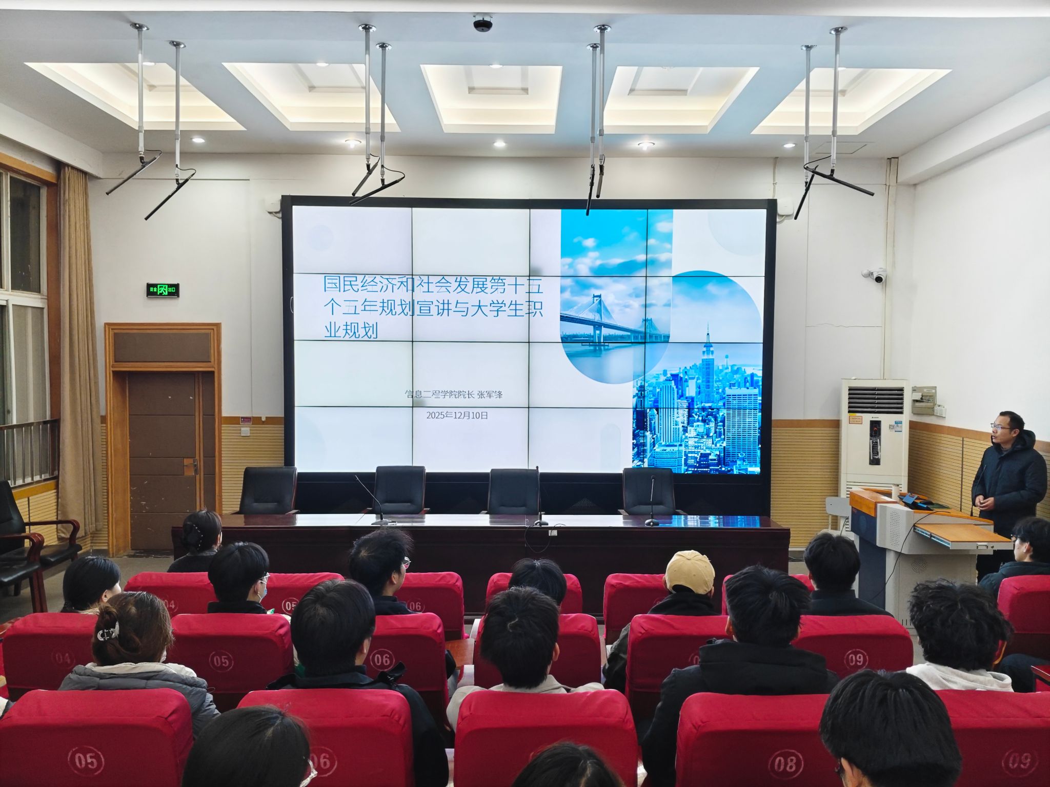 12月10日,谈球吧官网院长张军锋以“国民经济和社会发展第十五个五年规划与大学生职业规划”为主题,为全体学生干部讲授了一堂内容丰富、意义深远的思政课,引导学生将个人发展融入国家战略大局。